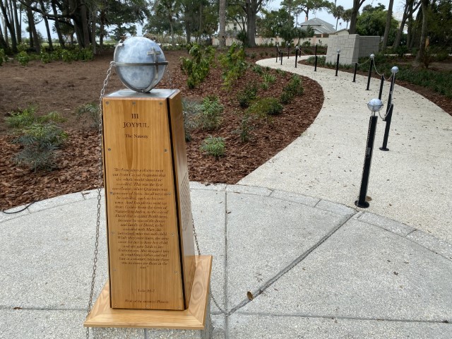 At Pinnacle Autosound we are almost always up for a new challenge. Not too long ago we were posed with an interesting project by a landscape architectural firm. The firm was putting together a project for the Mission Nombre De Dios in St. Augustine. The project was to make wood panels for the new Rosary Garden at the Mission. The panels would attach to aluminum frames that a metal fabrication company were making. Each panel has verses that are associated with the Mysteries of the Holy Rosary.