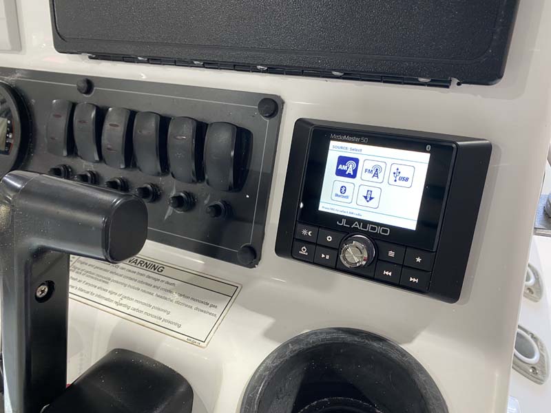 The final piece of the puzzle for this marine audio system was the source unit. The client wanted a rugged, reliable radio that would allow him to stream music from his phone. The JL Audio MM50 fit the bill perfectly for this installation. The large, easy to read, screen and multiple zone outputs are features that help make this radio stand out.